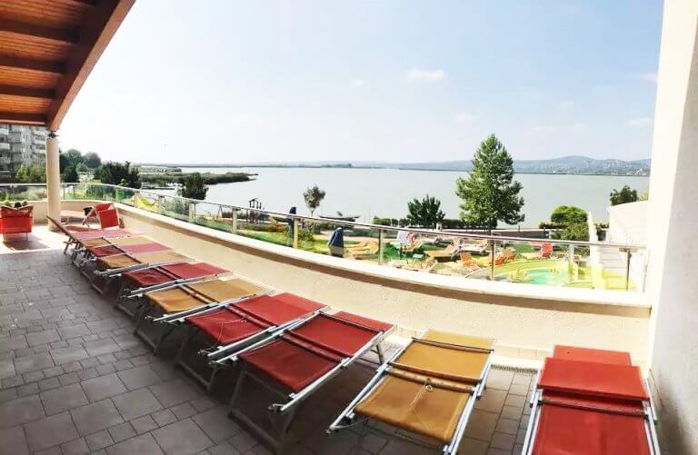 Vendégeink használhatják a tó parti privát strandot is, a gyermekeket pedig gyermekmedence, pancsoló, játszótér, valamint beltéri játszóházak várják. A szomszédos szállodában étterem és bár is működik.