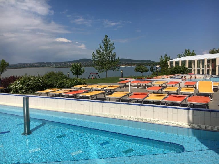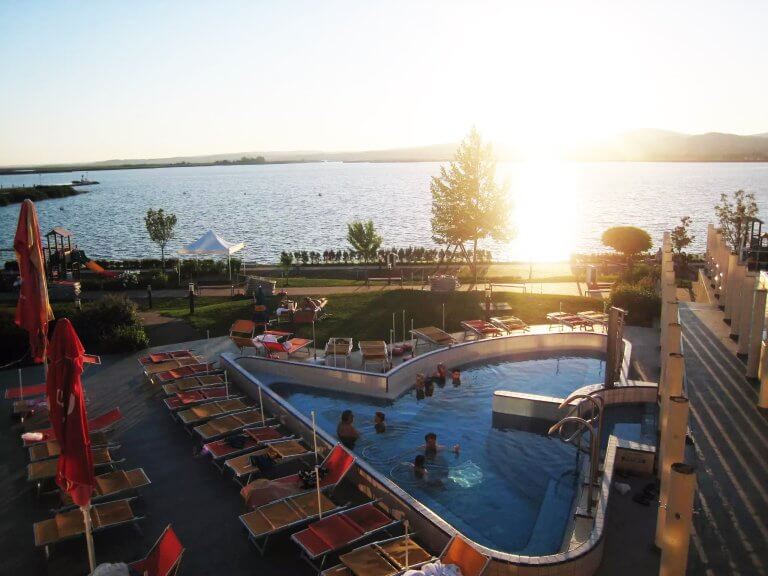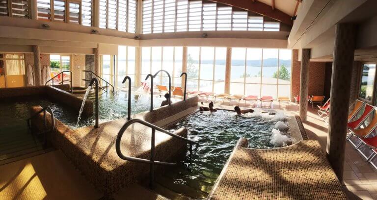 A fürdőben két gyógyvizes medence gyógyhatásait élvezhetik vendégeink. Egy a földszinten, egy pedig az emeleten áll rendelkezésre, melyek vize ásványi sókban gazdag, fokozza a szervezet ellenálló képességét, élénkítő és általános erősítő hatással van a szervezetre és a közérzetre, s emellett speciálisan is alkalmas különféle egészségügyi problémák kezelésére. Az emeleti medencében nyakzuhany és övzuhany, valamint tópanorámás kilátás teszi még kellemessebbé a gyógyfürdőzést.