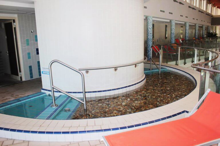 A tópanorámás, 34-36 ºC hőmérsékletű, 100 cm mély jacuzziban pedig derékmasszázsok és ülő pezsgőpad segítik a felfrissülést.